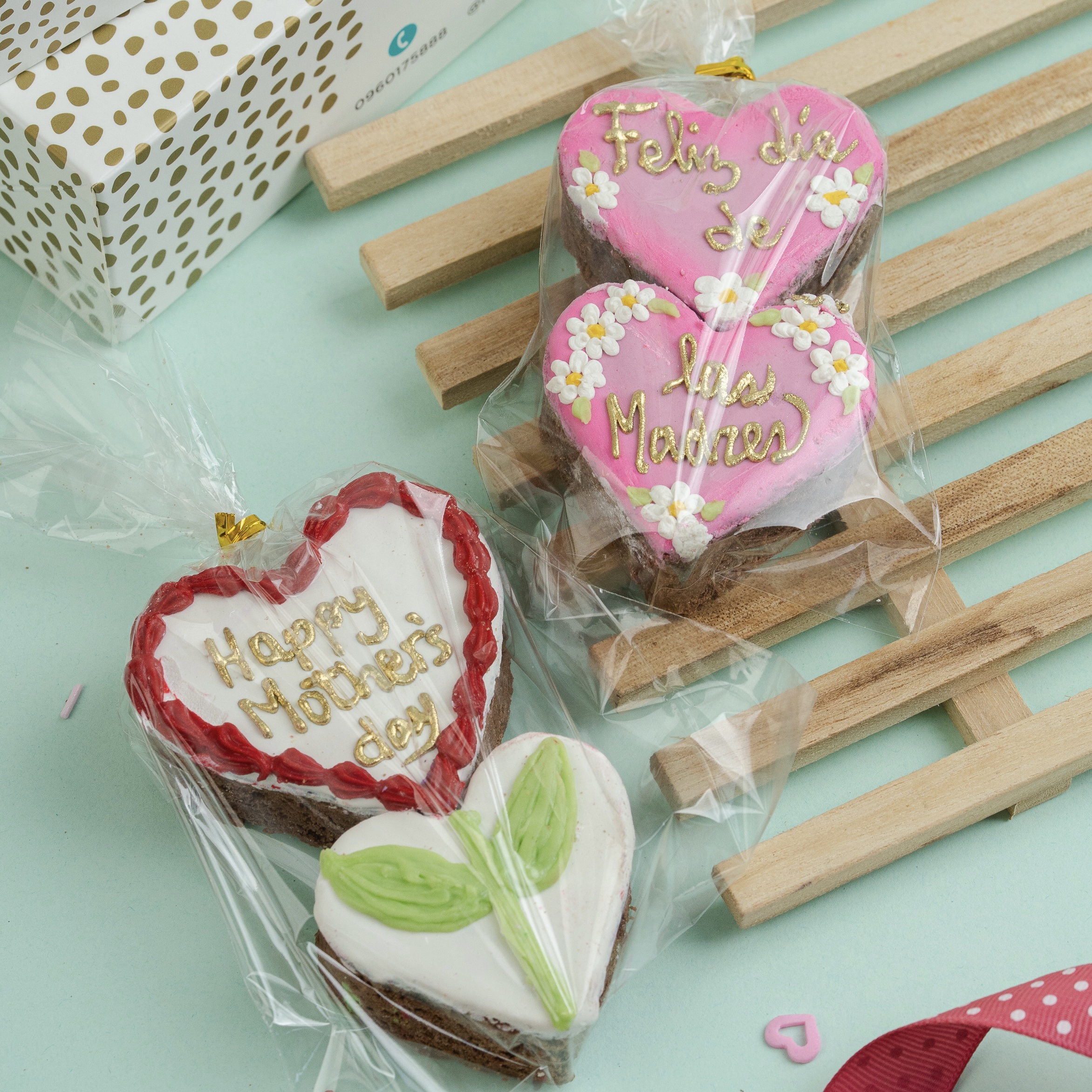 Paquete de brownie decorados con chocolate con temática del Día de la Madre