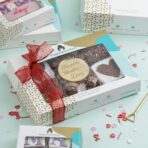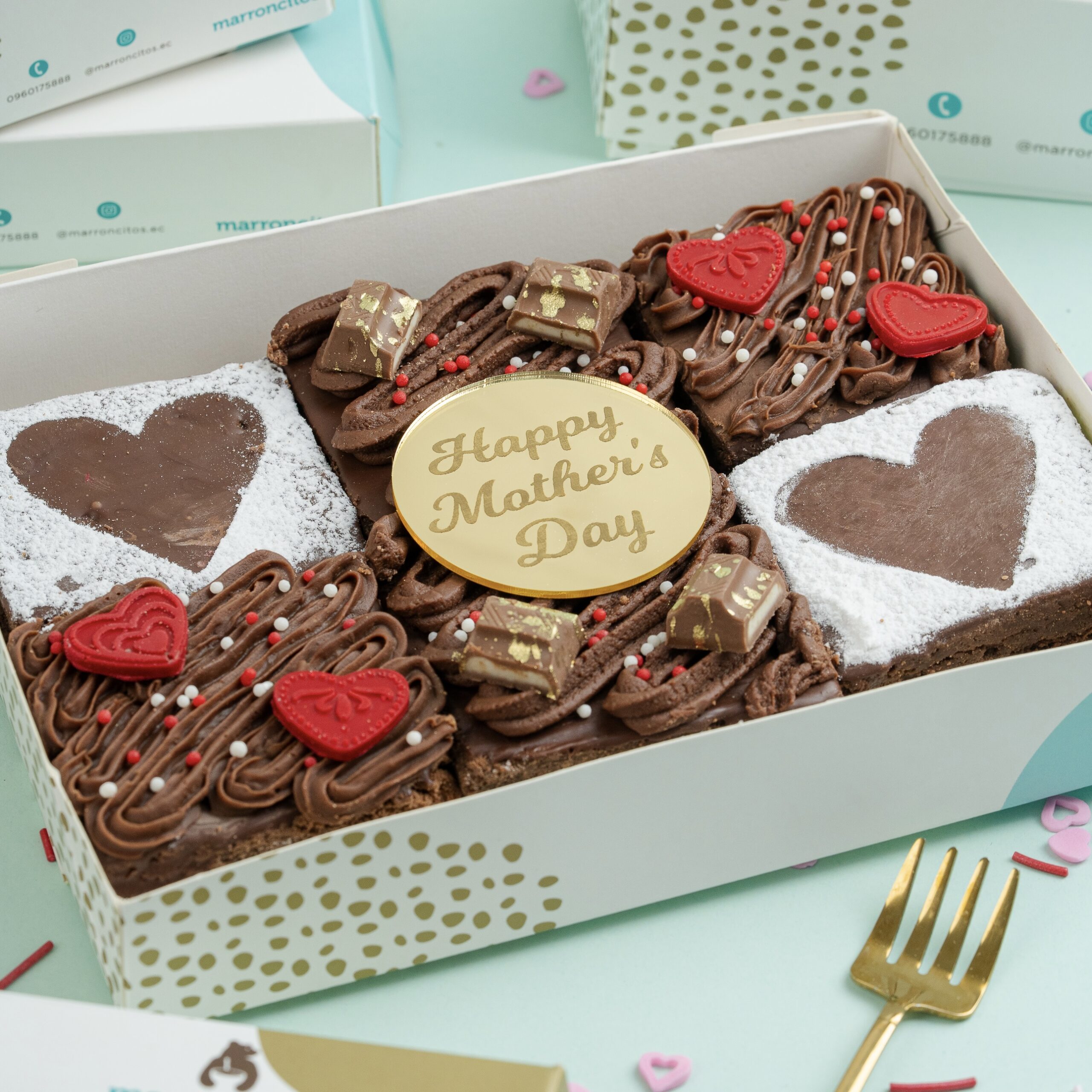 Caja mediana con 6 brownies decorados con chocolate con temática del Día de la Madre